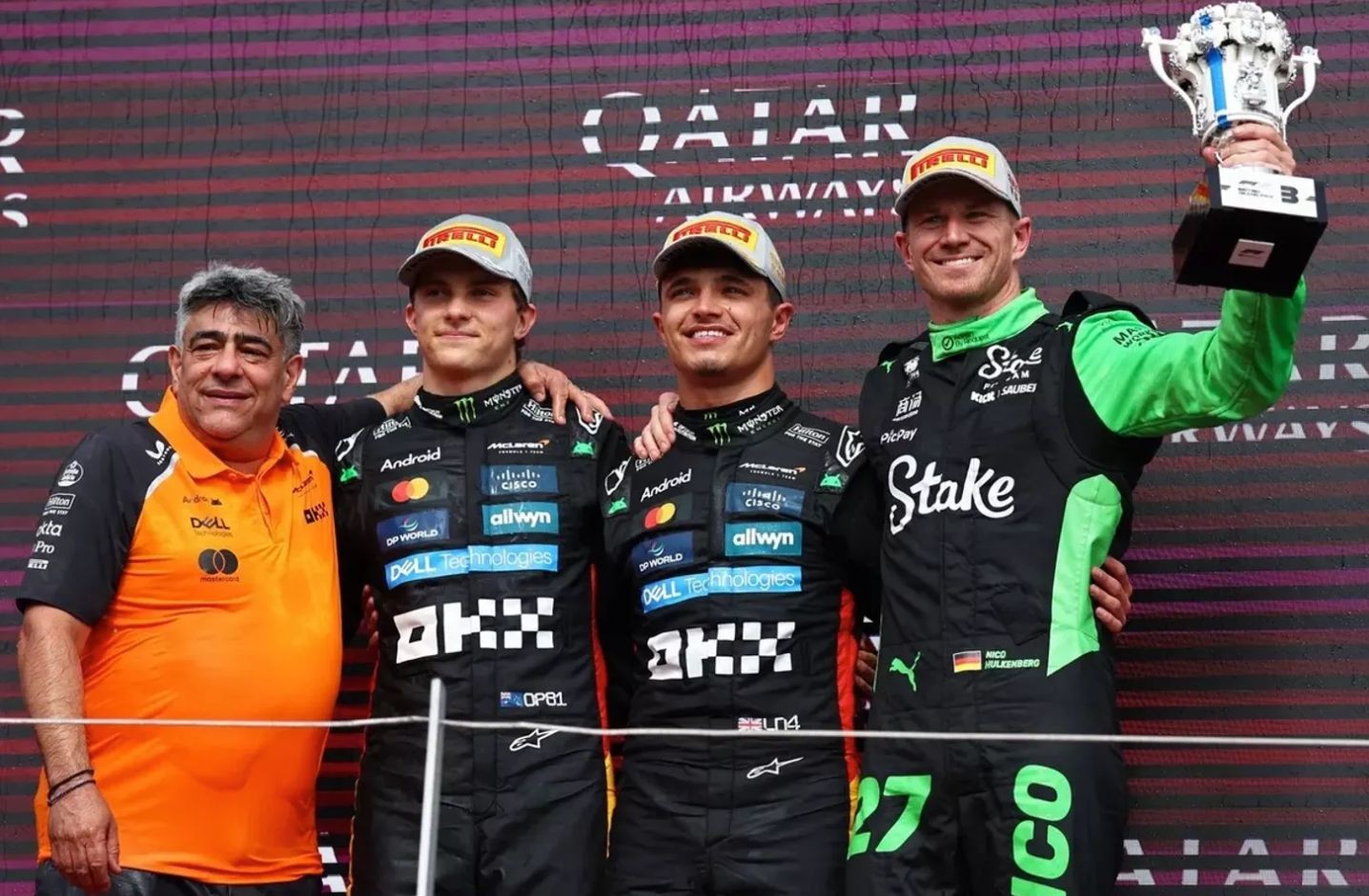 Его партнер по команде, Оскар Пиастри финишировал вторым с отставанием 6.812 секунды. Третье место на подиуме занял гонщик «Кик Заубера» Нико Хюлькенберг.