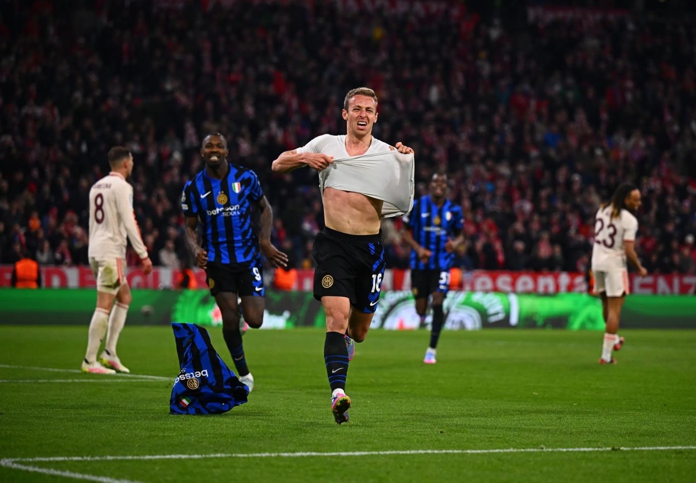 На 38-й минуте Маркус Тюрам и Лаутаро Мартинес разыграли красивую комбинацию. Тюрам пяткой отыграл мяч назад на Мартинеса, который классно подстроился и в касание уложил мяч в правую девятку. Просто шикарный удар шведой. Лаутаро — лучший бомбардир «Интера» в истории Лиги чемпионов, а гол в ворота «Баварии» стал для него 19-м за клуб.